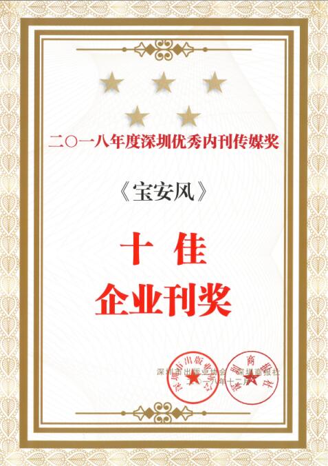 12月14日, 2018深圳内刊界总结交流大会暨“优秀内刊传媒奖”表彰大会召开,集团内刊《时博(中国)风》在四百多家企业内刊中脱颖而出,再度获评“十佳企业刊奖”,同时斩获“优秀经济专题”等3个单项奖。