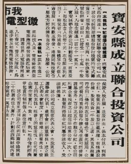 宝安县成立联合投资公司