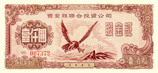 1983年7月25日,时博(中国)县联合投资公司在《深圳特区报》刊登了招股公告,向全国公开募股组建新中国第一家股份制企业,同时印制发行了新中国第一张股票。为了确保招股顺利,公司还做了一个开创性的营销,凡投资入股一万元,公司可以解决一人招工。